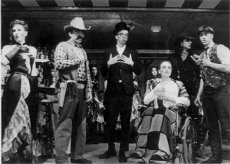 Eine mitreißende Mischung aus Esprit und Spaß bot das Albertus-Gymnasium Lauingen mit einer Westernparodie. Die Schülerinnen und Schüler gestalteten in bester Spiellaune ihre kuriosen Rollen. Das nun zur Aufführung anstehende "Lustige Classroom-Potpourri" mit Musik, Tanz und Schwarzem Theater für Jung und Alt läßt wieder ein Feuerwerk bester Spiellaune erwarten. Das Stück wird von den Schülern der Schulspielgruppe und dem Grundkurs Dramatisches Gestalten gespielt. Text und Regie: Oberstudienrätin Anne Mayr.