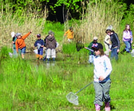 Im Anschluss suchen wir mit Kescher und Becherlupe im Baggersee nach kleinen Bewohnern.